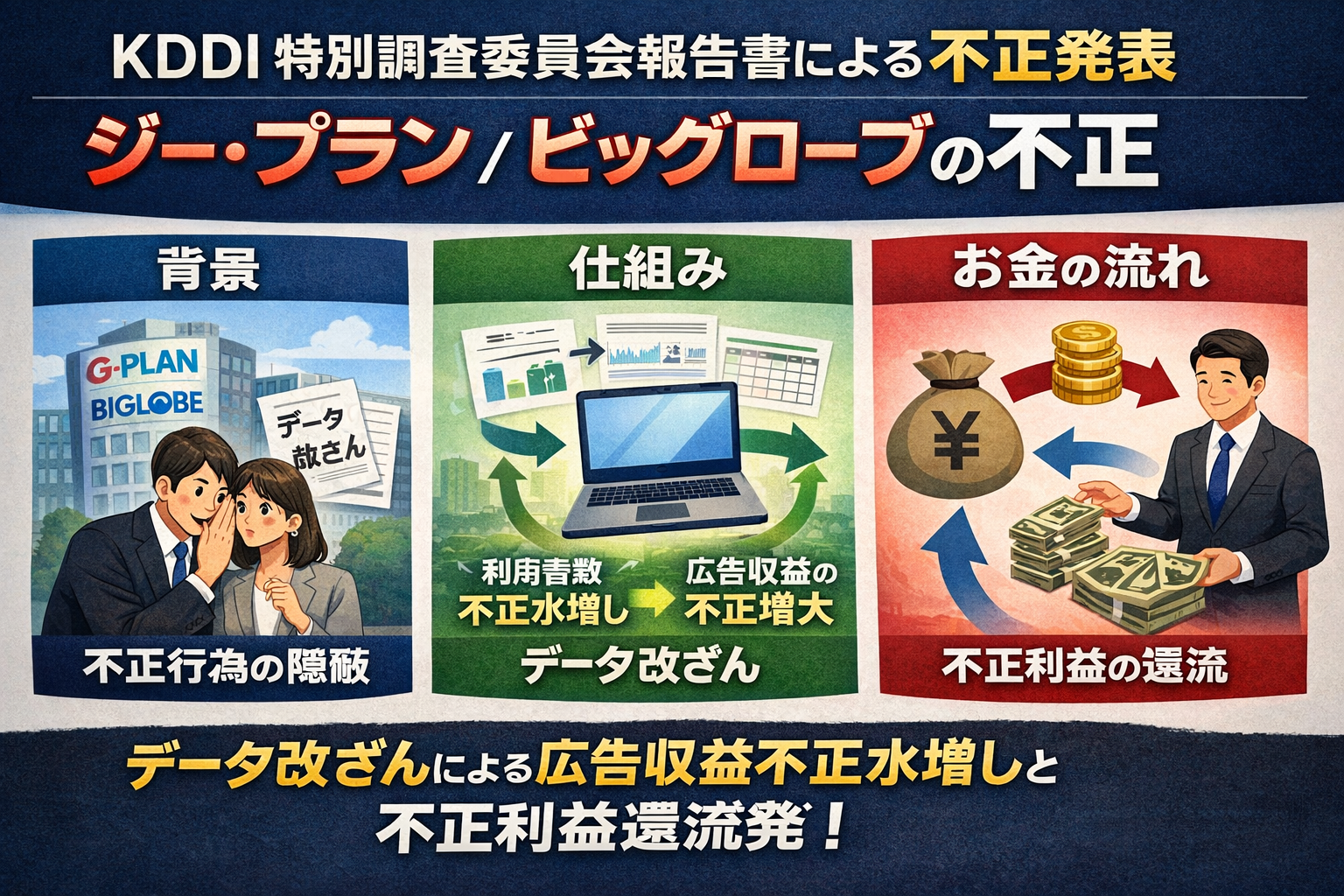 KDDI特別調査委員会報告書に基づく公式発表の不正(ジー・プラン/ビッグローブ)の背景・仕組み・お金の調査レポート