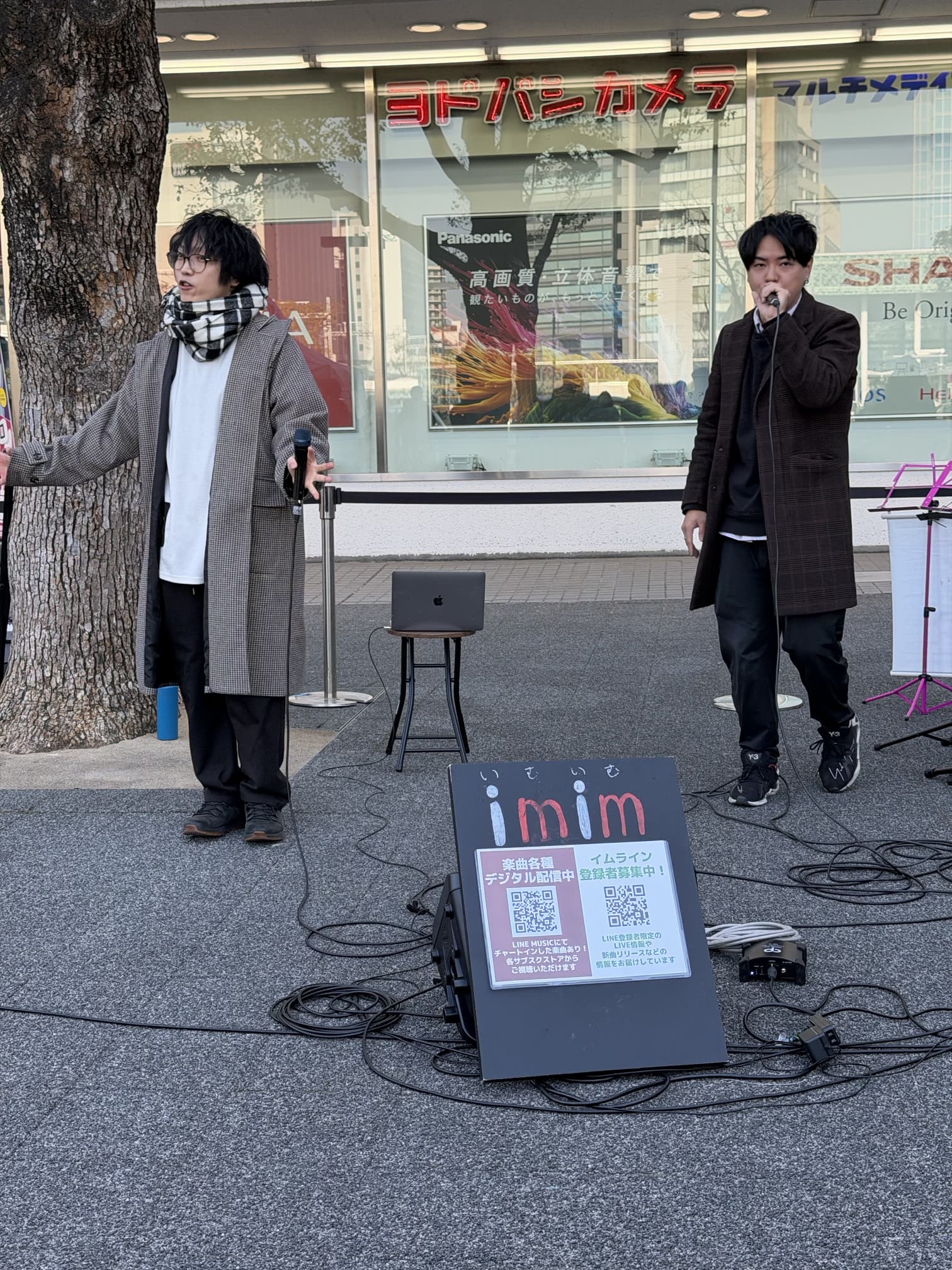 後ろでヨドバシカメラの放送がしているのがシュールですが、「HOME PARTY」を披露する。
