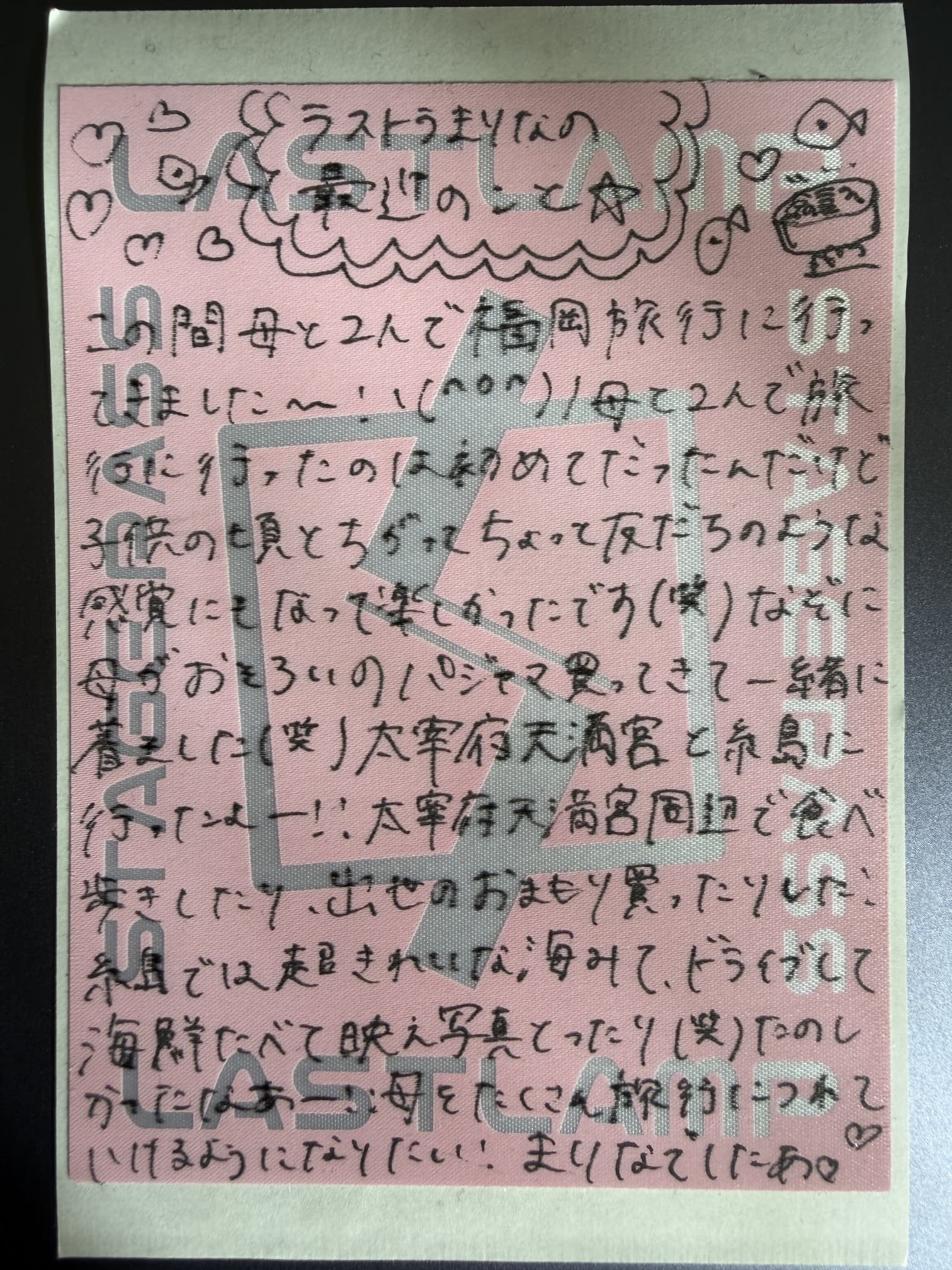 いつものパスステッカーとL版サイズのセットリストカード、ラストランプトレカ(ver.3)