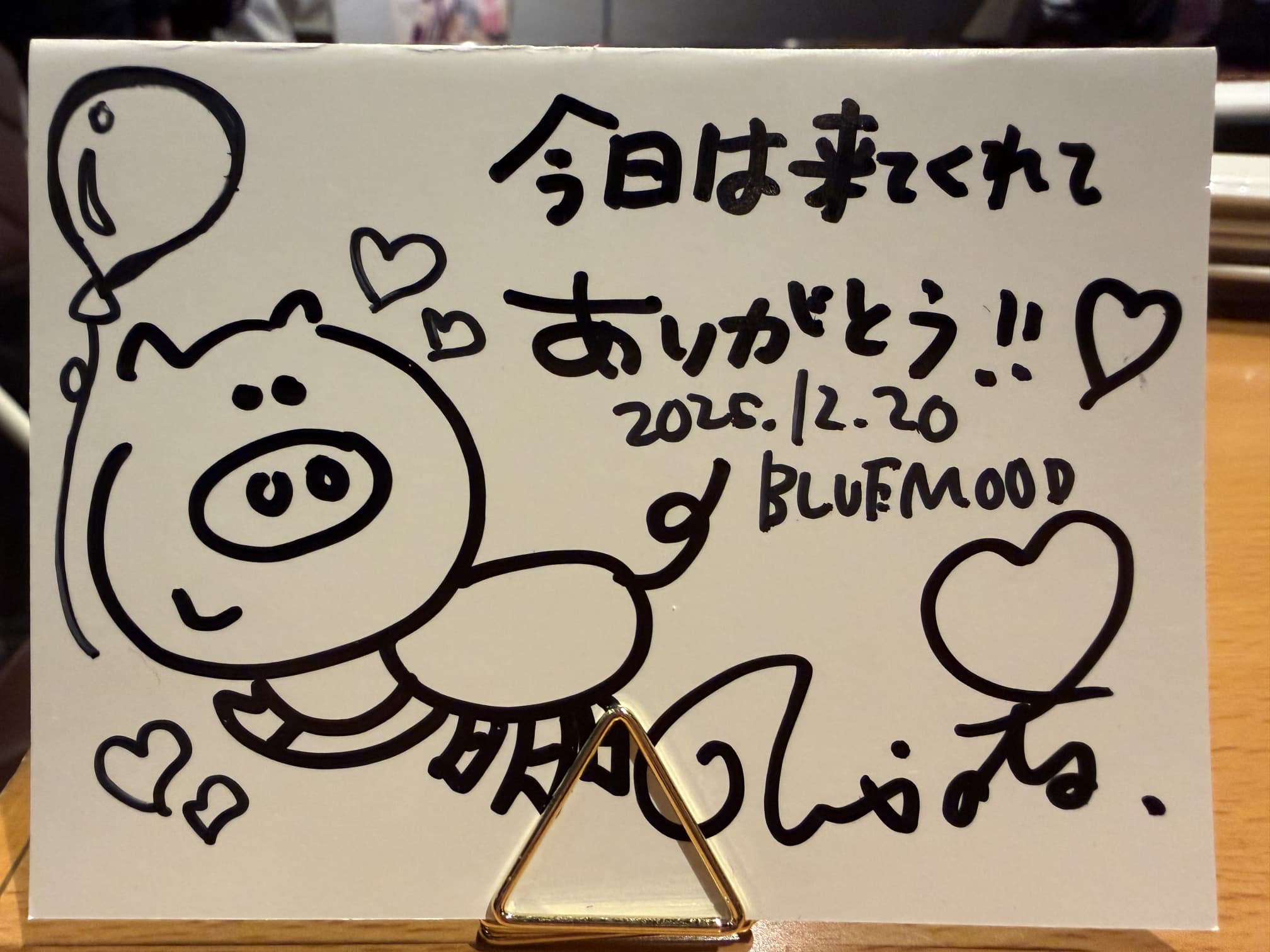 テーブルの上に置いってあったメッセージカード。