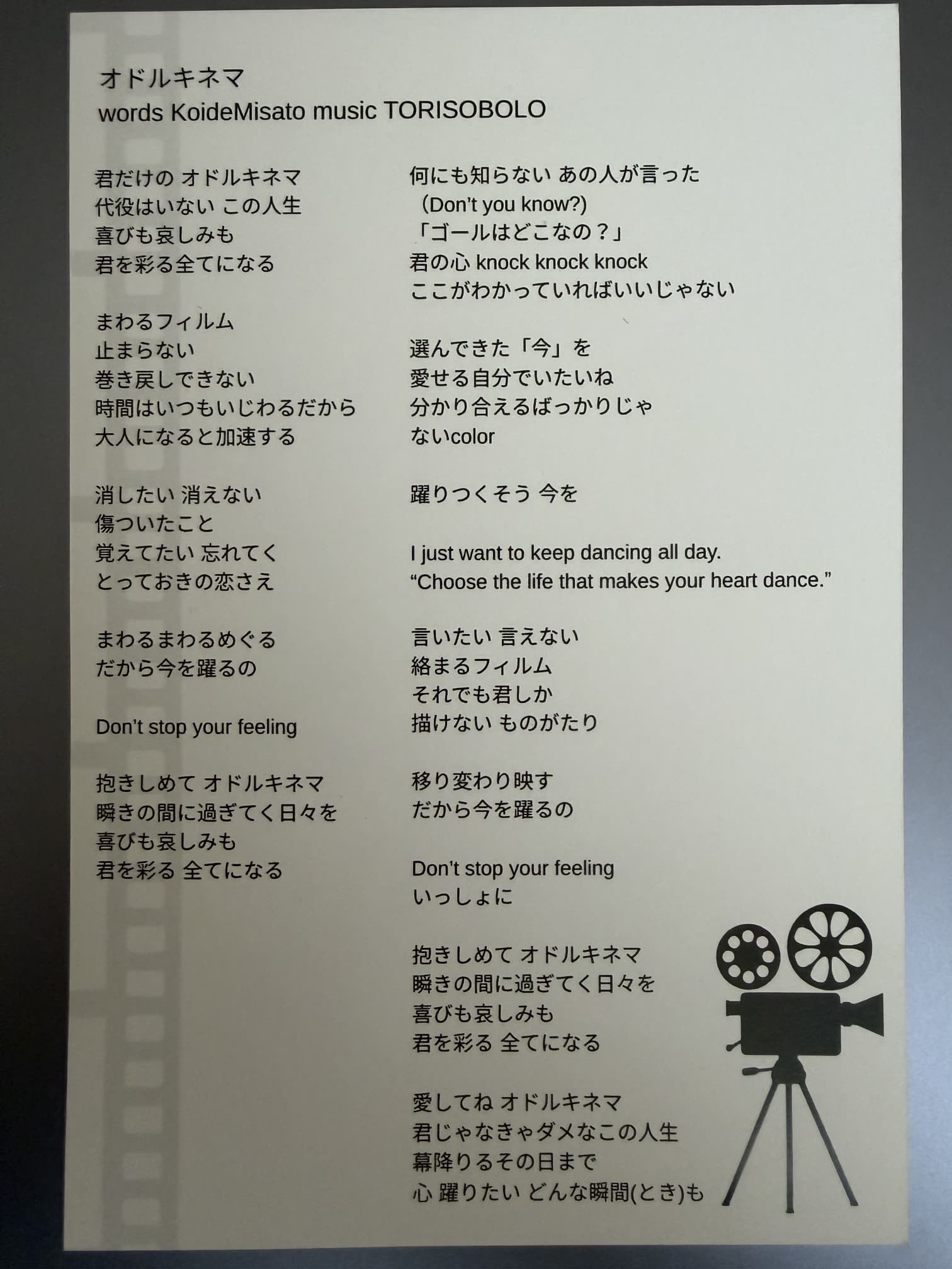前物販では買えなかった新曲歌詞ポストカード(オドルキネマ)を購入。